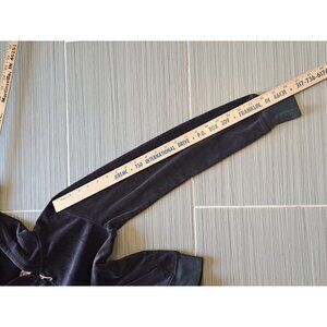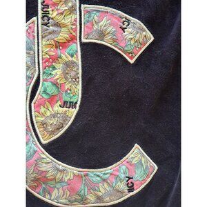 Y2K Juicy Couture Black Velour Hoodie Sunflower Embroidered Logo Womens Size XS