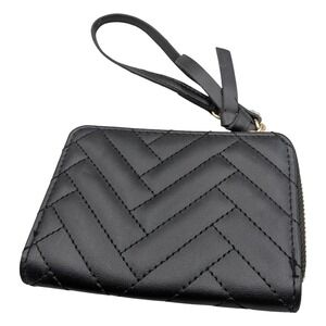 Bebe Black Quilted Chevron Wristlet Wallet Coin Purse Gold Tone Logo
