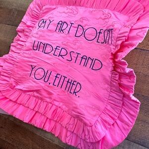 Dim the lights and get comfy on this My Art Doesn't Understand You, Either Jacquard Pillow! Its beautiful pink clouds and delicate ruffles create a cozy atmosphere that'll make you feel like you're living in a cotton candy dream. And let's not forget... it totally gets you, unlike the rest.