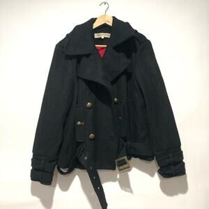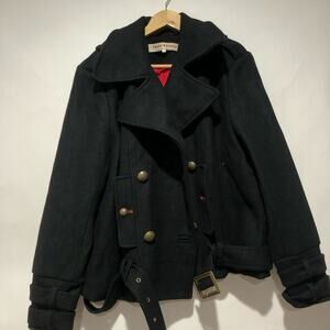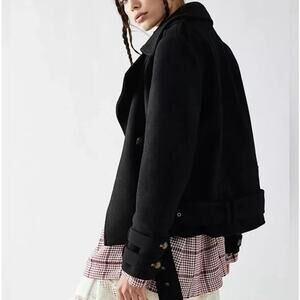 Free People Cecelia Peacoat Jacket Coat Button Front Buckle Detail Black Size M