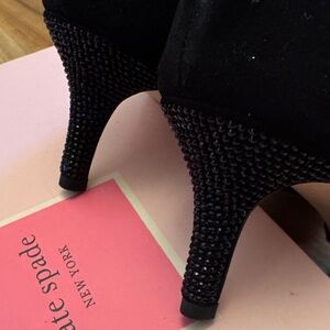Chic black suede heels by Kate Spade. Sleek design with a pointed toe. Perfect for elevating any outfit.