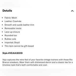 Like New VEJA Rio Branco Sneakers, size 7 womens