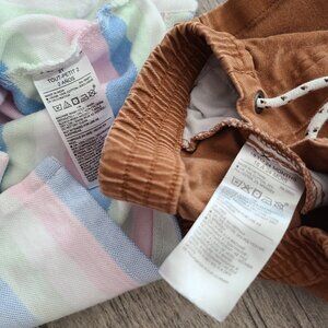 Janie and Jack boys pastel stripe short sleeve polo size 2T with brown pull on shorts in size 18–24 months, soft cotton blend fabric with classic preppy style.
