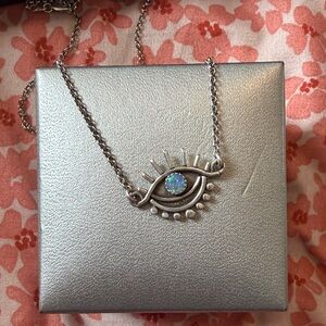 Elegant silver eye pendant necklace featuring a captivating Opal. Perfect for adding a touch of mystique to any outfit.