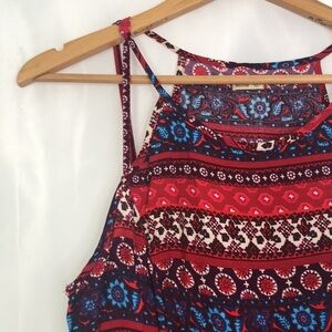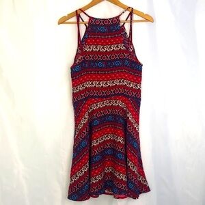 HOLLISTER Abercrombie & Fitch Halter Red/Blue Floral Mini Dress Size L