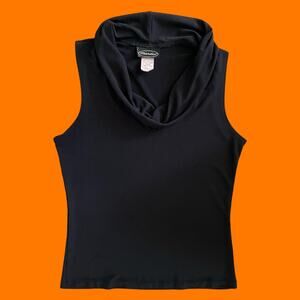 90's vintage black slinky cowl neck bodycon tank top LARGE mandee