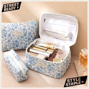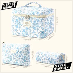 Quilted Cotton Travel Makeup Bag Set 3PCS Large Capacity Cosmetic Organizer