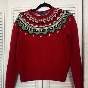 Ralph Lauren MED Red/Green hand knit Fair Isle 100% lambs wool Sweater