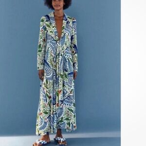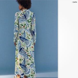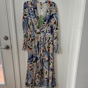 NWT FARM Rio Macaw Flight Maxi Plunging V-neck Long Sleeve Dress S