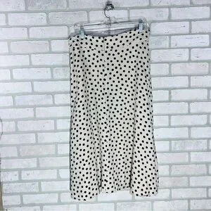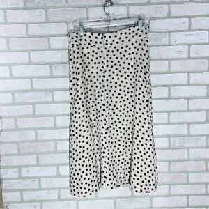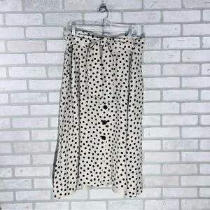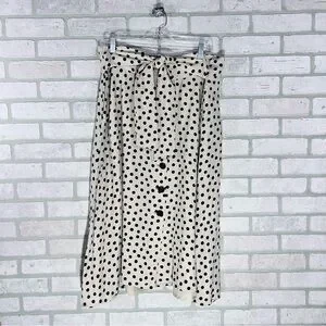Ann Taylor Black and Cream Polka Dot Button Front Tie Belt Midi Skirt Size 18