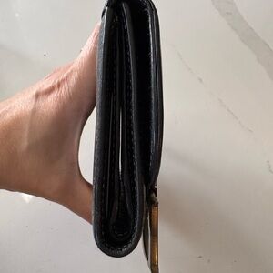 Vintage Christian Dior Saddle Flap Wallet – Black Leather with Gold D Charm