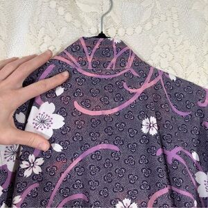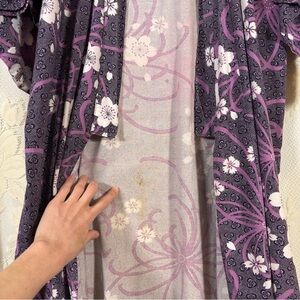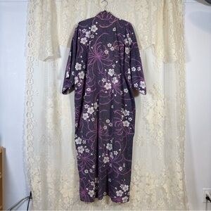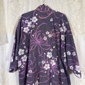 Midori Obi Arts Yukata Floral Kimono Duster Robe Purple Lavender White Boho
