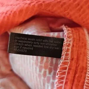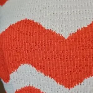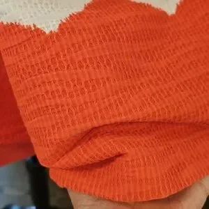 Add a little splash of fun to your wardrobe with this cute orange and white chevron dress. Made with a more structured cut and material. Has a little bit of a flare and has pockets.