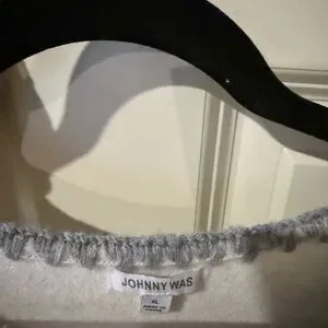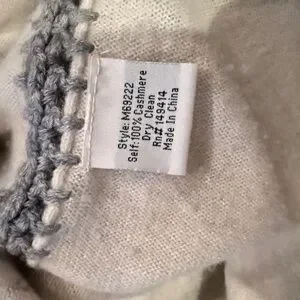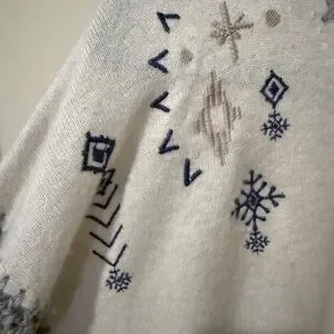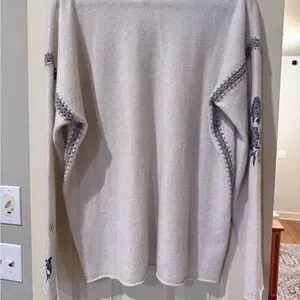 Johnny Was Cream V-Neck Whipstitch Cashmere Sweater with Blue and Red Embroidery