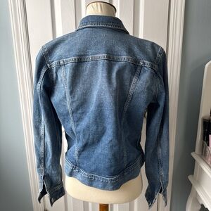 Stylish indigo jean jacket. Features button front and chest pockets. Ideal for layering.