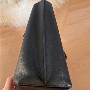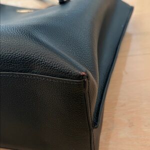 Black leather tote bag with red interior. There is a zipper that fits a 13” MacBook laptop. Perfect for school, super comfy and stylish. Some wear and tear (as pictured). 🖤❤️