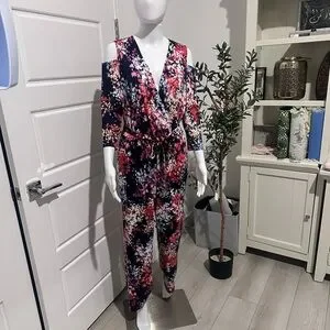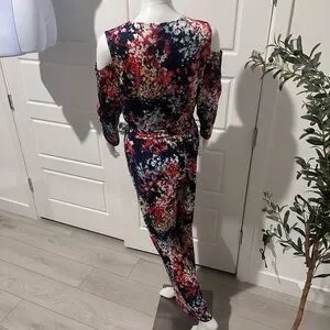 NY Collection Multicolor Floral Cold Shoulder Jumpsuit