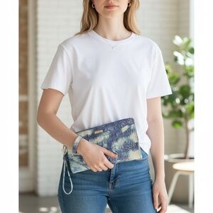 NWOT Brahmin Blue Ombre Croc Embossed Leather Wristlet w/ Dust Bag
