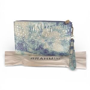 Stunning NWOT Brahmin croc-embossed leather wristlet in a gorgeous blue and seafoam ombré colorway with gold-tone hardware.