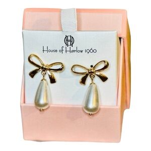 House Of Harlow 1960 Bow Glass Pearl Dangle Earrings Push Back - New In Box