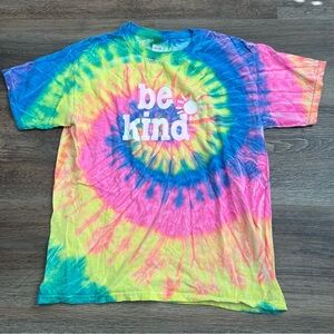 Be Kind Tie Dye Graphic T-Shirt Youth Large Rainbow Spiral Cotton Colorful