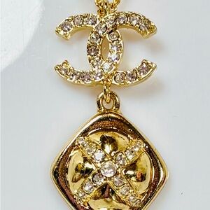 Sophisticated monogram gold-tone necklace with a striking rhinestone pendant. Ideal for elevating any ensemble.
