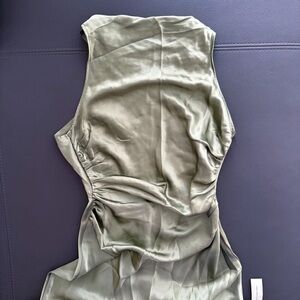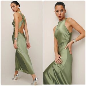 New with tags Reformation Casette silk satin midi slip dress in green.