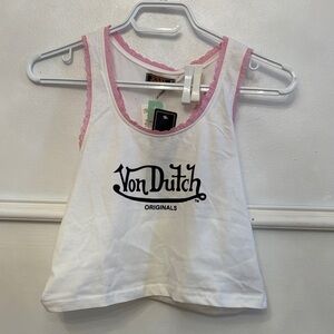 New with tags Von Dutch Tank Top cropped with Pink Lace Trim