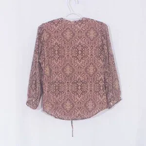 details—blousy sleeves, a waist-cinching drawstring, the works. In a vintage-inspired geometric print, this top can do day or night duty.