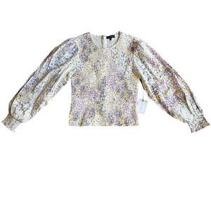 1. STATE Floral Print Long Puffed Sleeve Smocked Blouse Size M