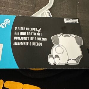 Adorable baby creeper set featuring a bib and booties. Perfect for infants.