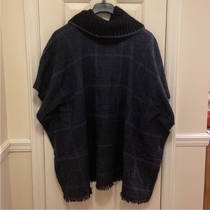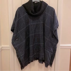 V. Fraas Houndstooth Blue Black Poncho With Knit Collar