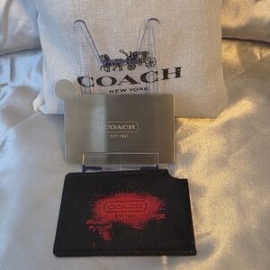 Stylish Coach card holder in black with a striking red accent. Perfect for organizing your cards.