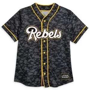 Rise-up against the opposing team in this sporty Star Wars button front baseball jersey with embroidered ”Rebels” logo on front and block ”77” numerals on back.