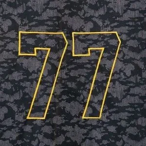 Embroidered block ”77” numerals on back