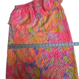 Features: This mini dress is known for its asymmetrical one-shoulder design and tropical neon patterns.