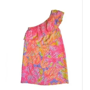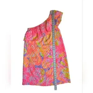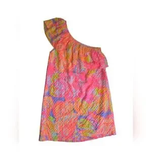 Lilly Pulitzer Emmeline One Shoulder Dress in the colorful "Sun Splashed" seersucker print.