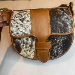 Stylish saddle bag featuring a unique brown and black leather design. Perfect for adding a touch of elegance to any outfit.