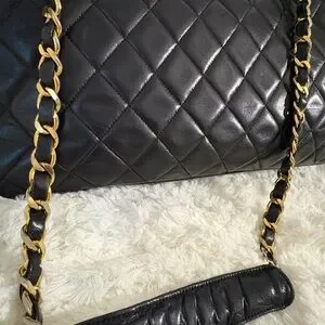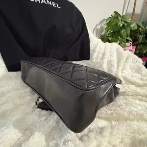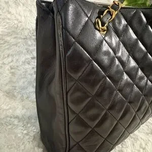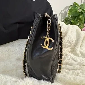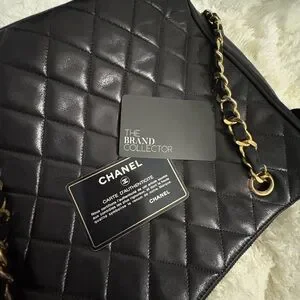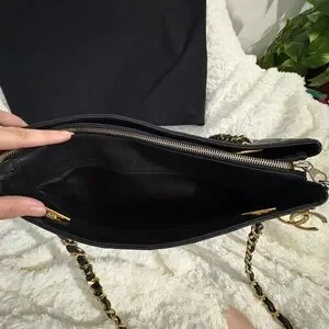 Elevate your style with this Chanel black quilted leather shoulder bag. Featuring a luxurious design and gold chain accents, it's perfect for any occasion.