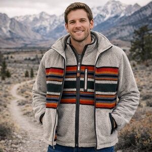 Pendleton Jacket & Vest Set National Park Glacier Stripe Sherpa Mens S/M fullZip