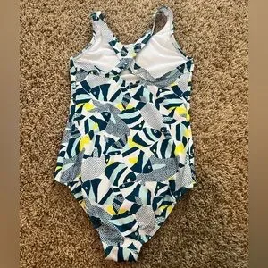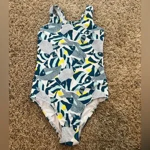 Lands' End One-Piece Swimsuit - Blue and Yellow Fish Design