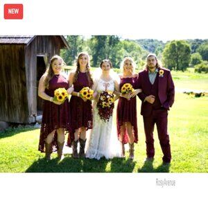 A beautifully crafted formal dress featuring a quality lace fabric and a flattering high-low hemline. Designed for special occasions, it offers an elegant silhouette suitable for weddings, parties, and evening events.
