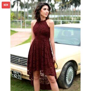 ✨ Elegant Lace Halter Hi-Lo Cocktail Dress