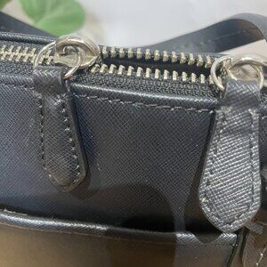 This is a great black bag. This bag is in good condition, but not pristine. Leather crossbody strap included.
