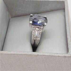Checkerboard Cut Genuine Tanzanite & Diamond Simulant 925 Sterling Silver Ring