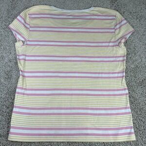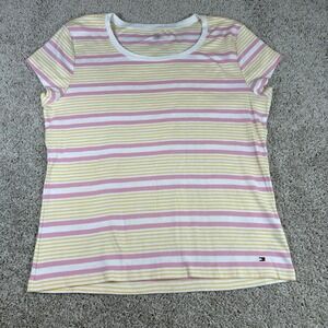 Tommy Hilfiger T Shirt Womens Short Sleeve Striped Pink Yellow Cotton Size XXL