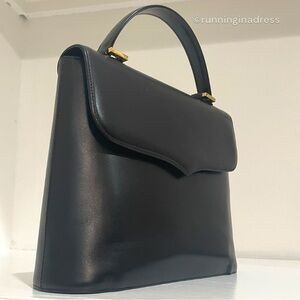 Vintage Yves Saint Laurent Top Handle Cassandra Leather Bag In Black & Gold. Details: