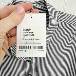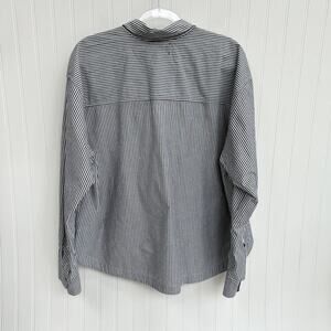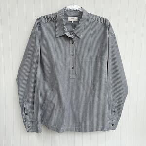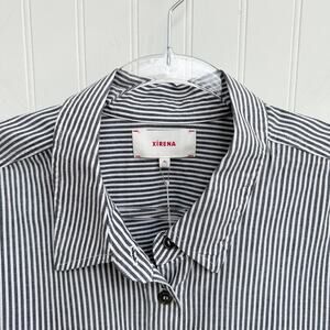 Xirena Lynden White Grey Striped Cotton Button Down Blouse Shirt XL Collar Chic