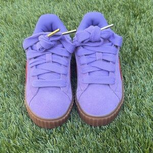 New Kids Puma Vibrant violet sneakers with striking crimson stripes. Durable sole and stylish design. Color Lavender Alert/Burnt Red/Gum. Comes with exclusive bag and extra laces. No box
