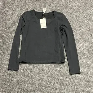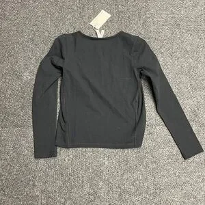 Elegant charcoal long sleeve tee. Soft and cozy. Ideal for everyday wear. Does have a few dirt spots that should come out when washed. I did not wash it since it is new with tags.